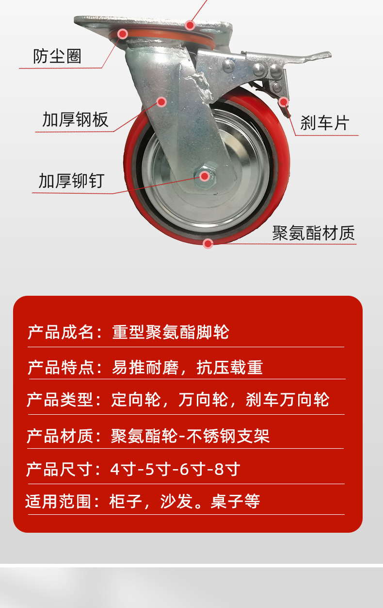 重型脚轮4寸5寸6寸8寸万向轮聚氨酯轮子韩式铁芯PU推车轮